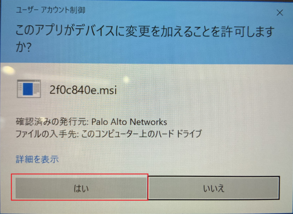 ユーザーアカウント制御が表示されたら、[はい]をクリックします。