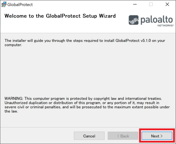 インストールウィザードが表示されますので、[Next] をクリックします。