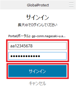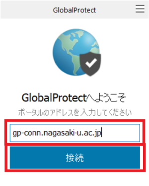 [gp-conn.nagasaki-u.ac.jp]と入力し、[接続]をクリックします。